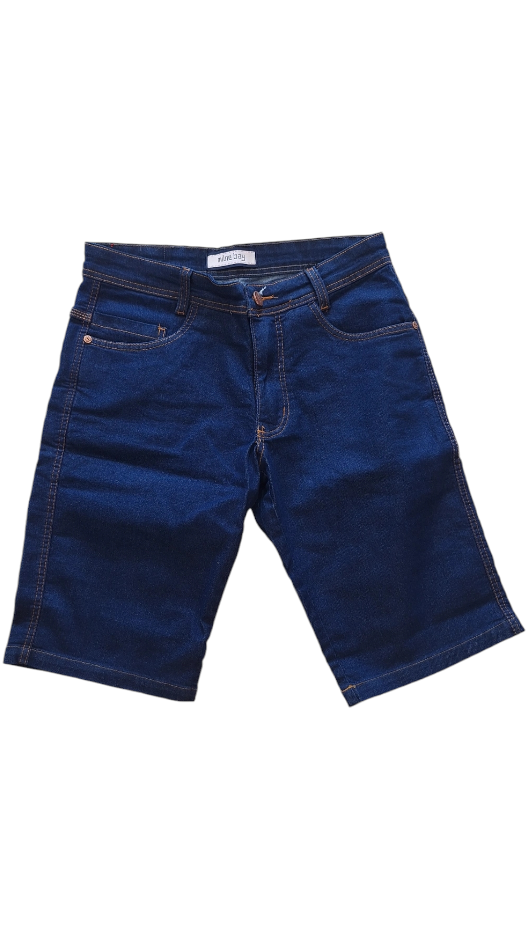 SOBRE: BERMUDA MASCULINA LISA AZUL ESCURO COM BOLSOS LARGOS E FUNDOS PASSANTE LARGO PARA CINTO BOTÃO PERSONALIZADO ZIPER INVISIVEL .