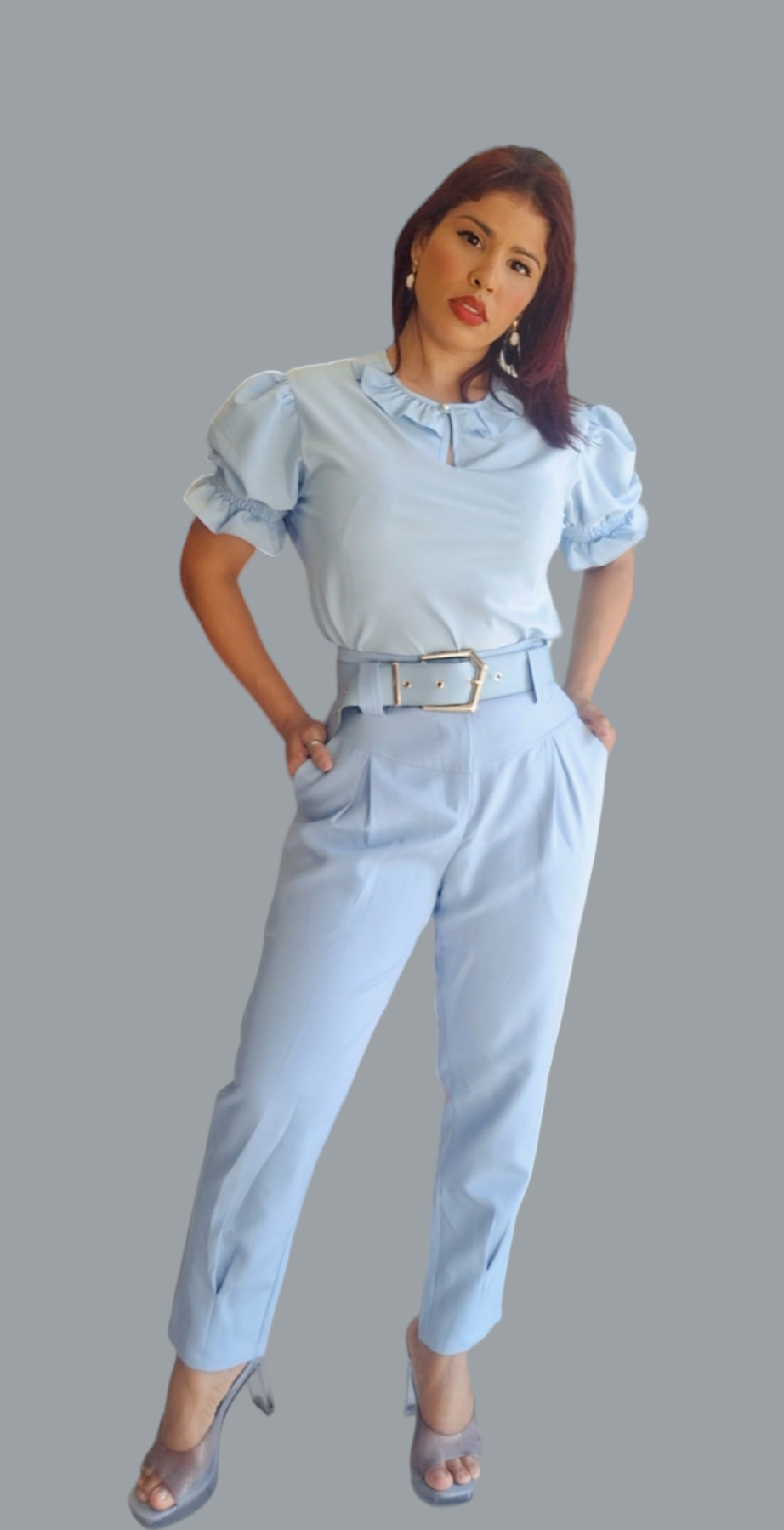 CALÇA FEMININA ALFAIATARIA CINTURA ALTA DETALHE NA FRENTE EM PINÇA PASSANTE LARGO DE CINTO