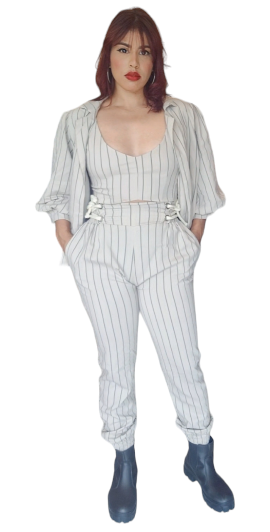 CALAÇA ALFAIATARIA COM LISTRAS CINTO DE MACRAME NA LATERAL REGULAVÉIS BOLSOS PERNA JAGGER