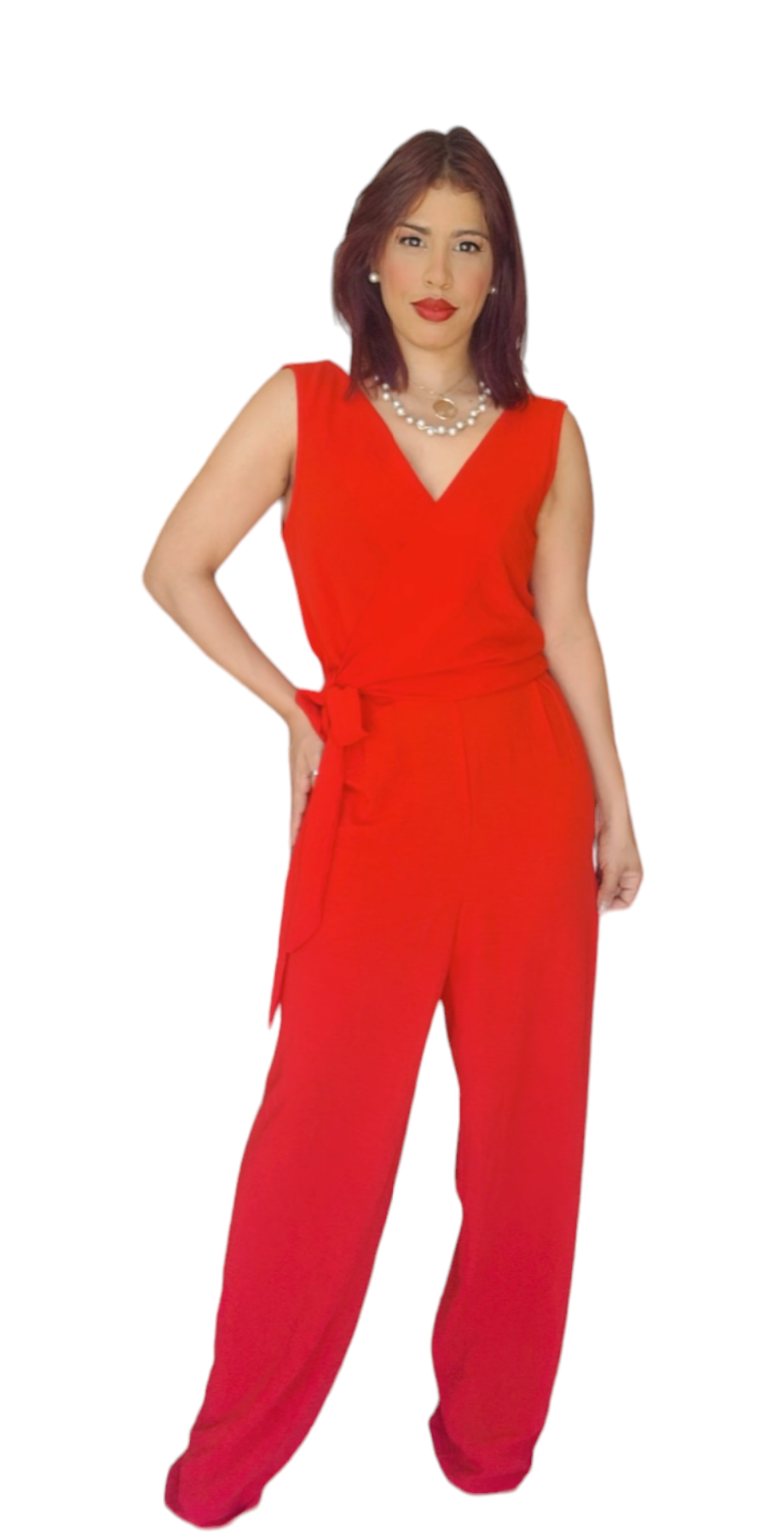 MACAÇÃO LONGO LISO TRANSPASSADO DECOTE EM V PERNAS FLARE