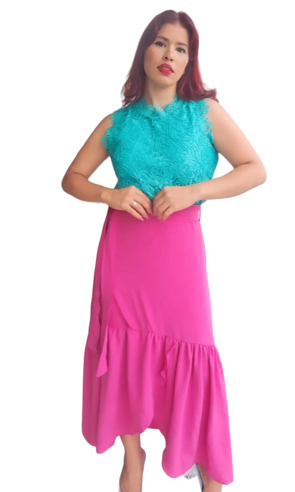 SAIA DALUNA LONGA LISA COM CÓS EM ELASTANO