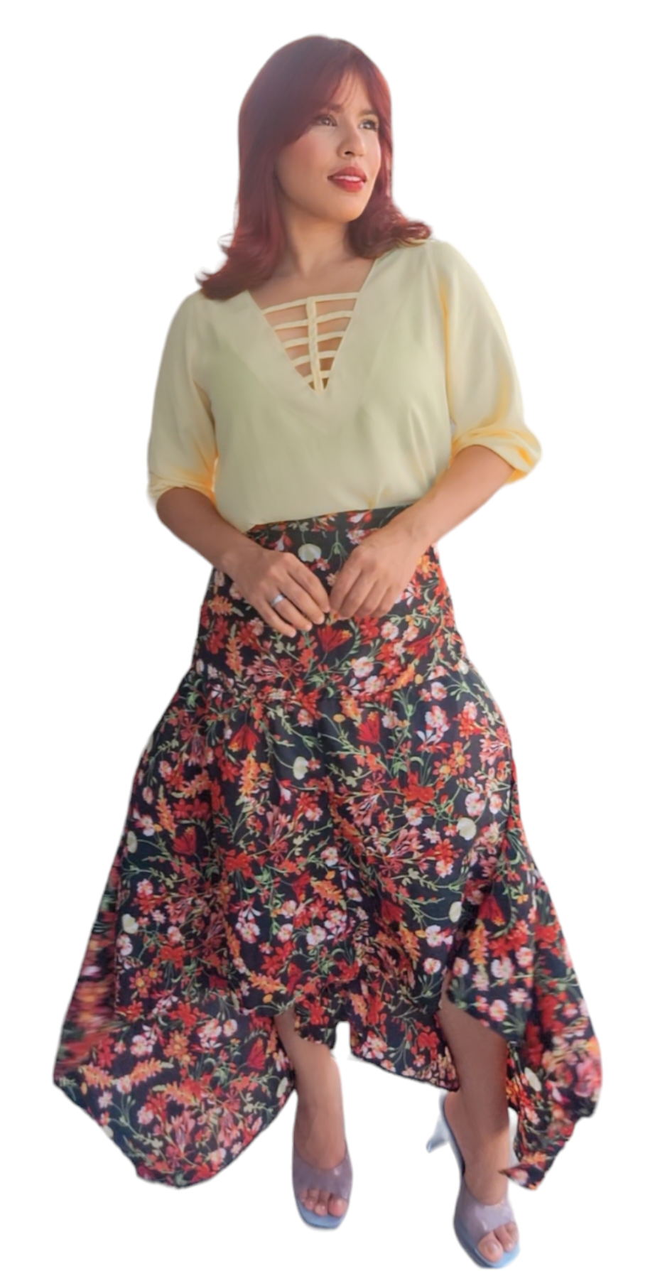 SAIA LONGA ESTAMPADA DE FLORES SILVESTRES