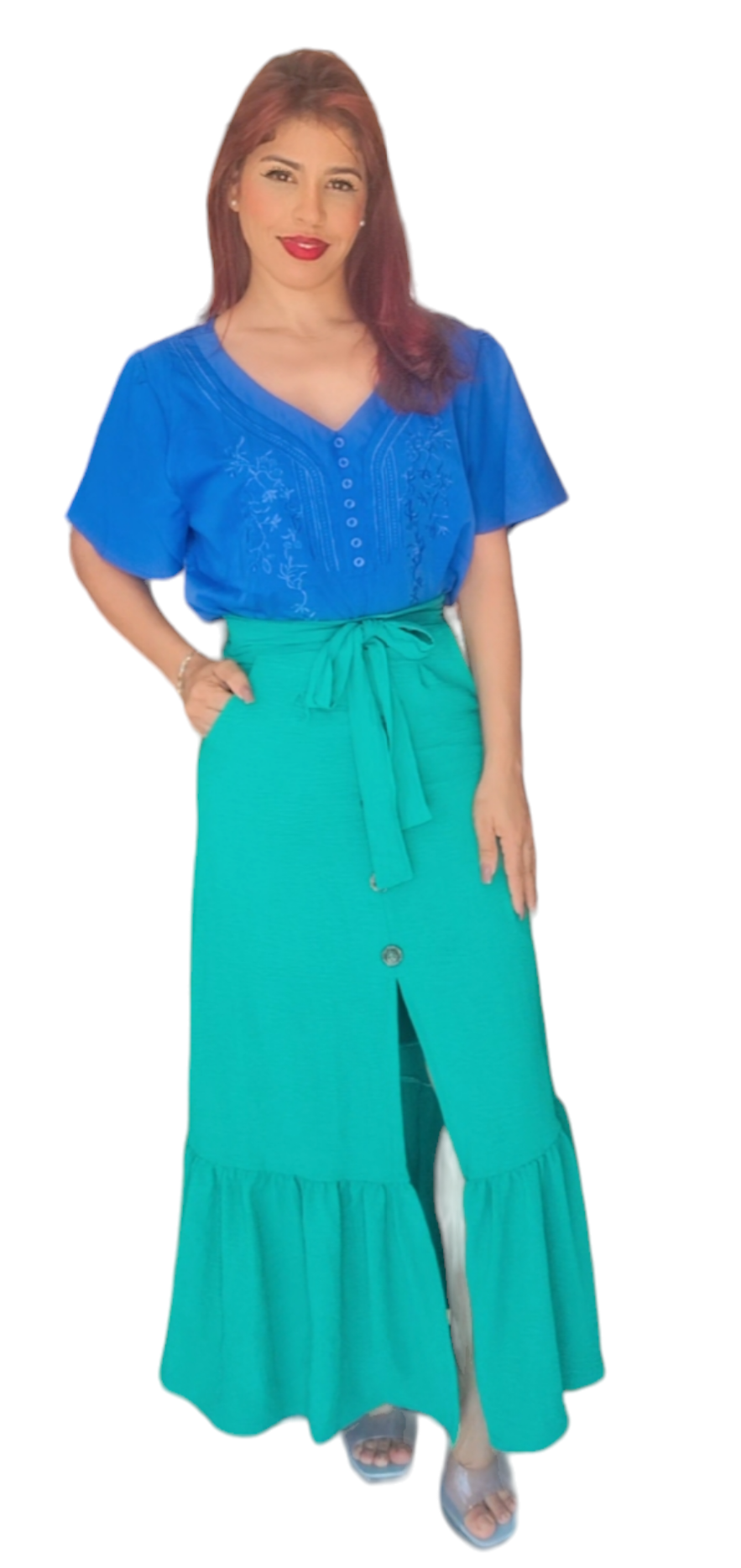 SAIA LONGA LISA DALUNA BOTÕES FRONTAL E FENDA